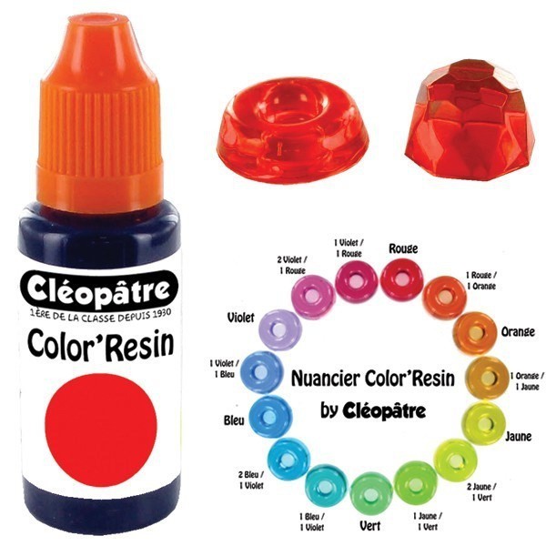 A Cleopatre Color'Resin kompatibilis minden gyantával, így az epoxyval és az UV gyantákkal is. Színei keverhetőek, sokszínű árnyalatokat létrehozva. Nagyon erős: egy csepp elegendő 10 ml gyanta színezéséhez.